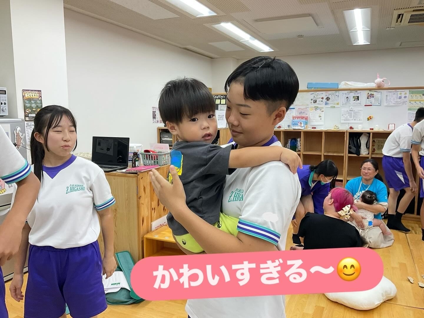 おにいちゃんおねえちゃんとたくさんふれあえて幸せ者だなぁ。我が子もこんな風に大きくなるのかな。中学生ってどこで遊んでるのか聞けてよかった…